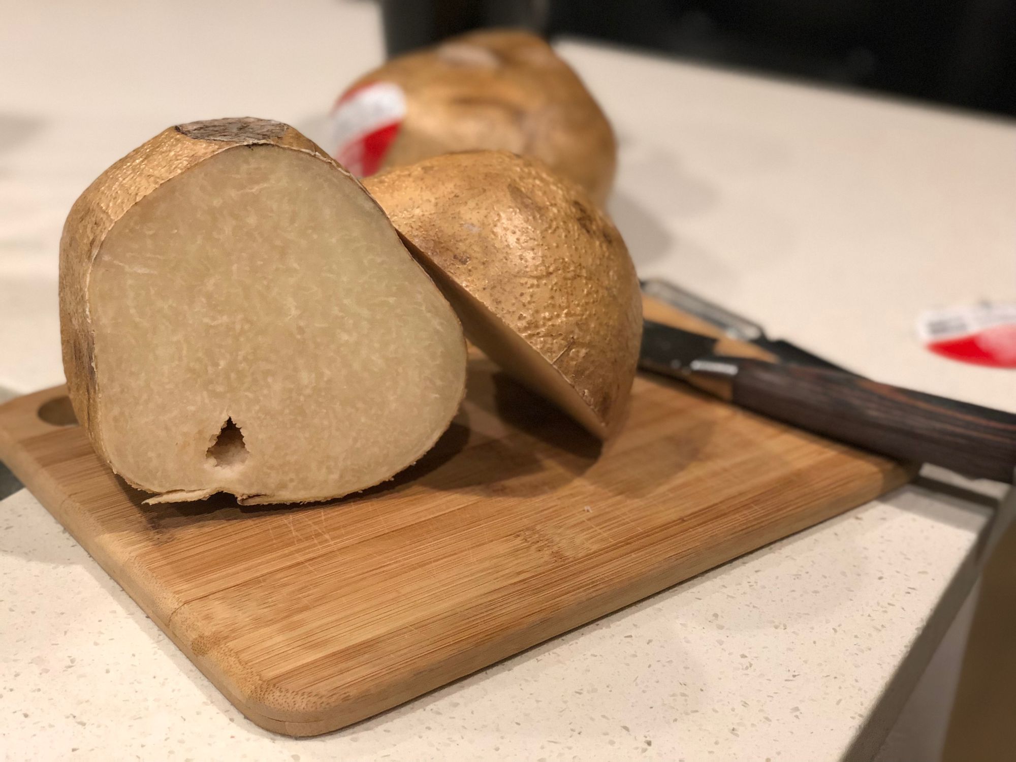Jicama. It's that massive onion-shaped potato-looking vegetable you probably pass in the grocery store without ever noticing.