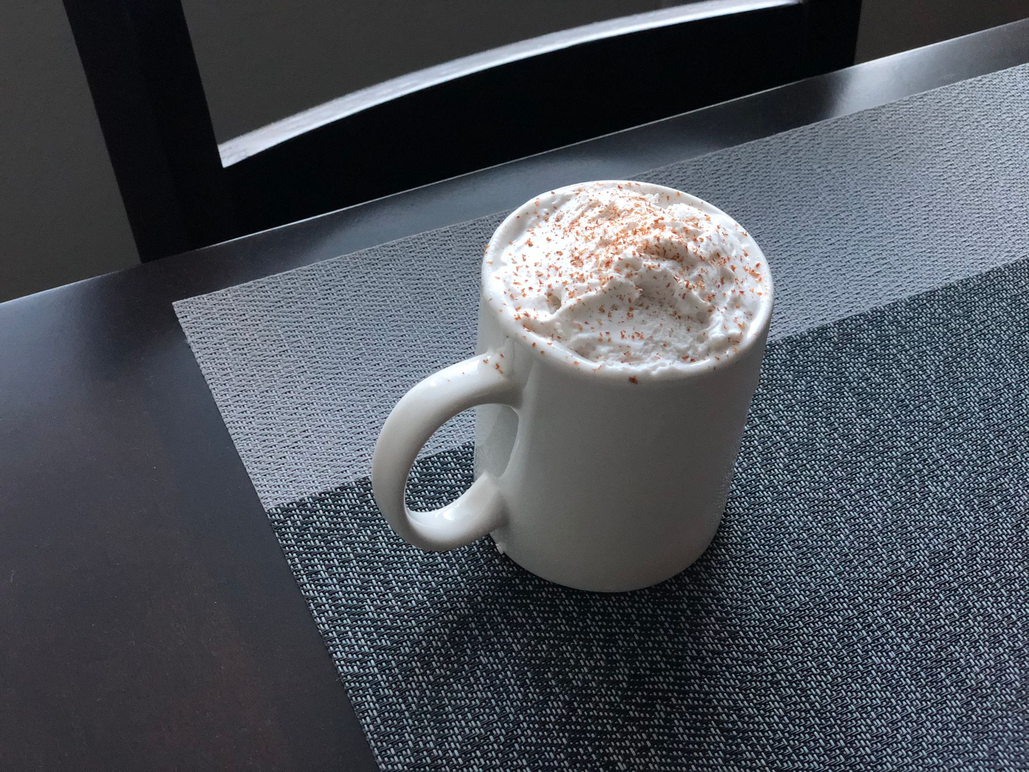 - Garnish with coconut whipped cream and a dash of cinnamon.