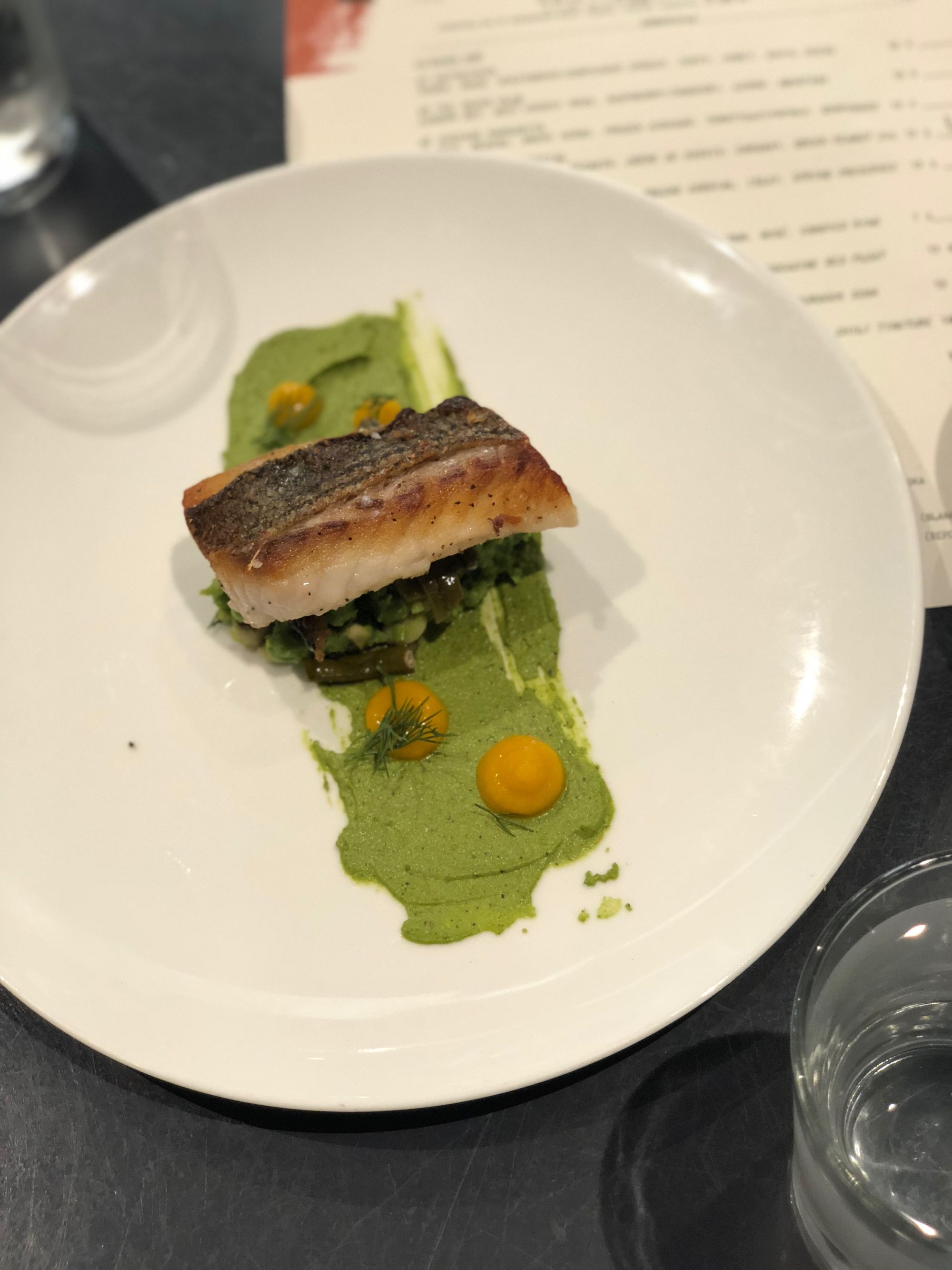 This bass dish was the first plate to hit our table. I loved the colors here, specifically how the crisped fish stood out from the bright green purée on the bright white round plate. This dish was the most expensive singular small plate on the menu, coming in at $20.