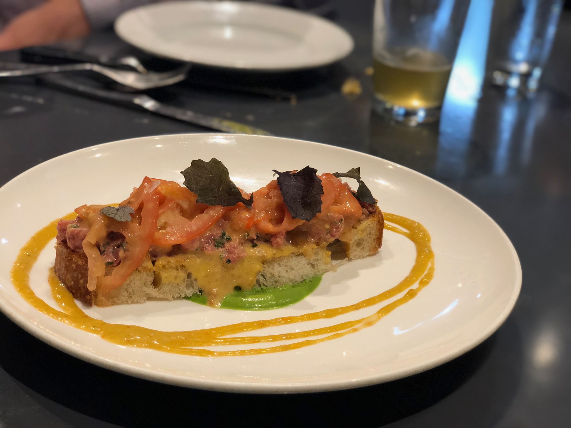 Again, another dish my folks wouldn't touch. I, on the other hand, will eat raw beef any chance I can. This take on beef tartare is intended to mimic a BLT (bacon, lettuce and tomato sandwich). The raw beef is coated in a bacon fat mayonnaise and comes with fresh, local tomatoes. The coolest part of this dish? Lettuce cream! I didn't know I needed puréed lettuce in my life — this plate told me I have been missing out.